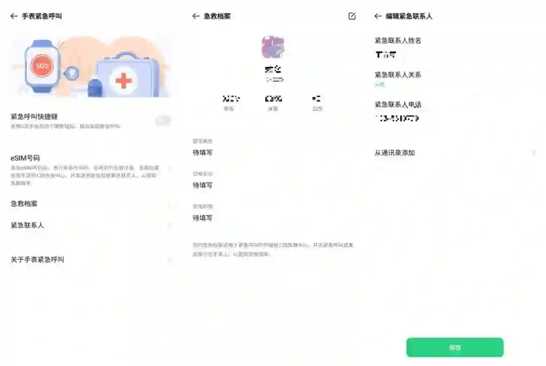 因此可以说 OPPO Watch ECG 版本的存在,让那些不适应 Apple 生态、主要使用 Android 设备的长辈们多了一种选择。另外,在 OPPO Watch 上,我们甚至还可以为家人的手表开通 eSIM、设置急救档案并打开手表的紧急呼叫功能。随后他们就可以在任何情况下连按 5 次手表侧边下键自动拨打 120 救援电话并发送短信给紧急联系人了。