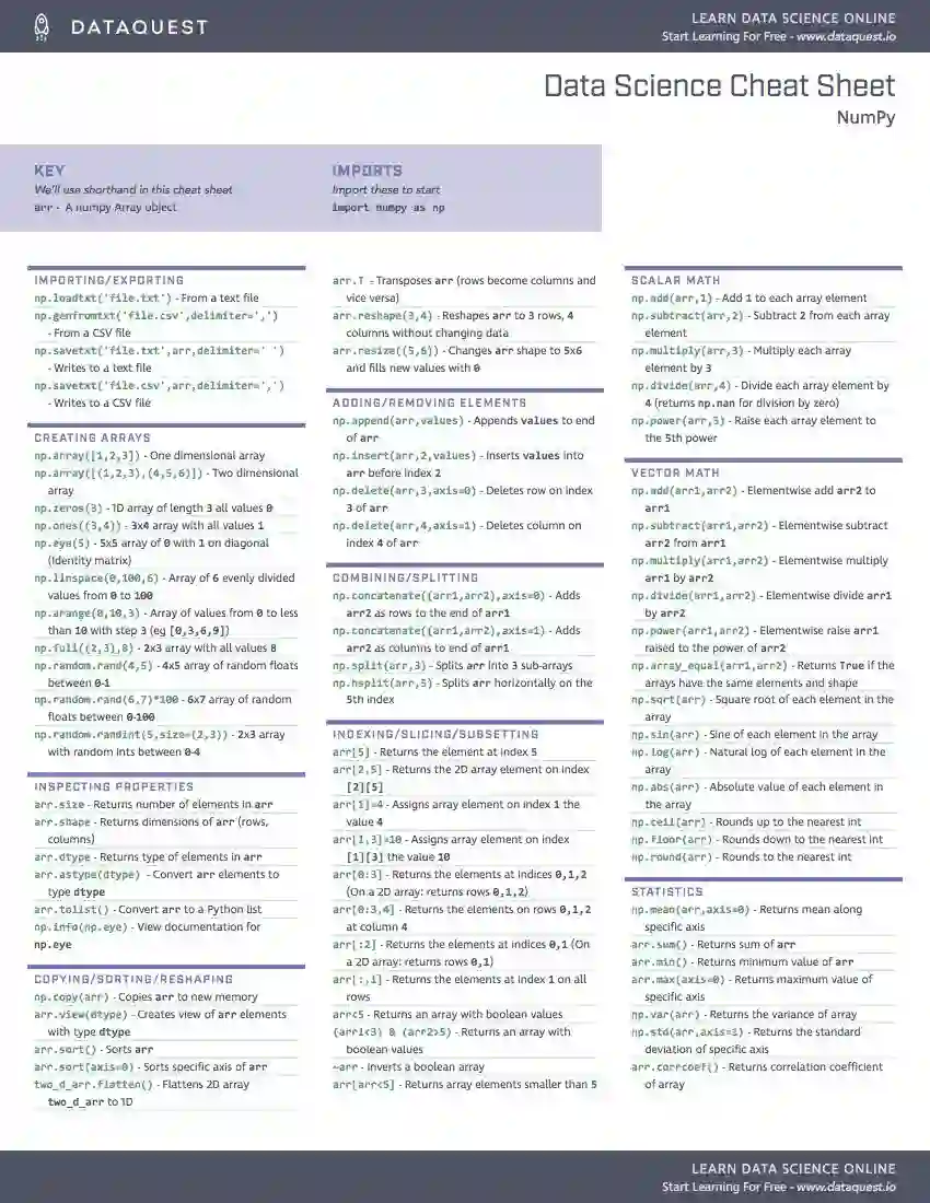 来源: https://www.dataquest.io/blog/numpy-cheat-sheet/