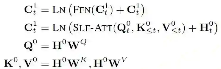 然后通过两个Attention层对输入的信息进行建模,第一层是auto-regressive建模中的带masking的Attention建模机制: