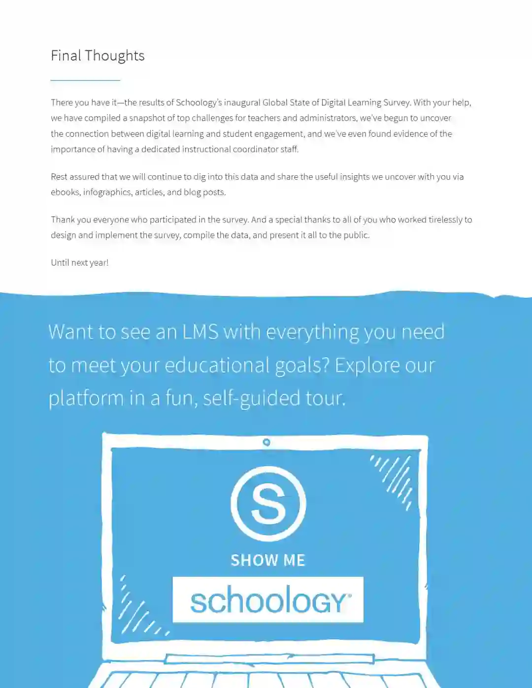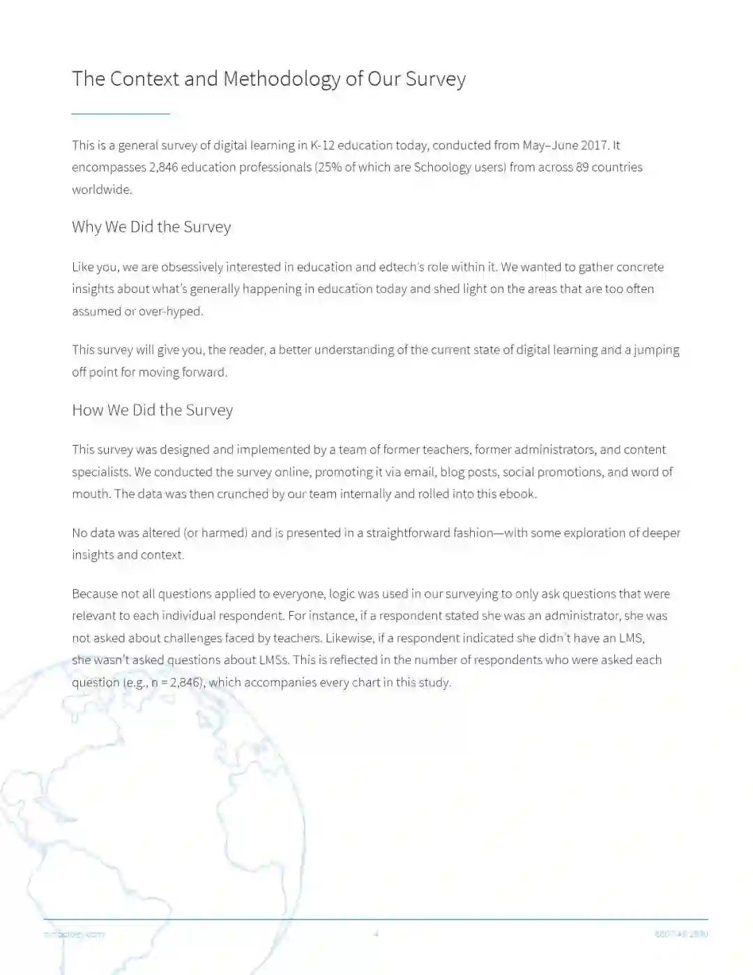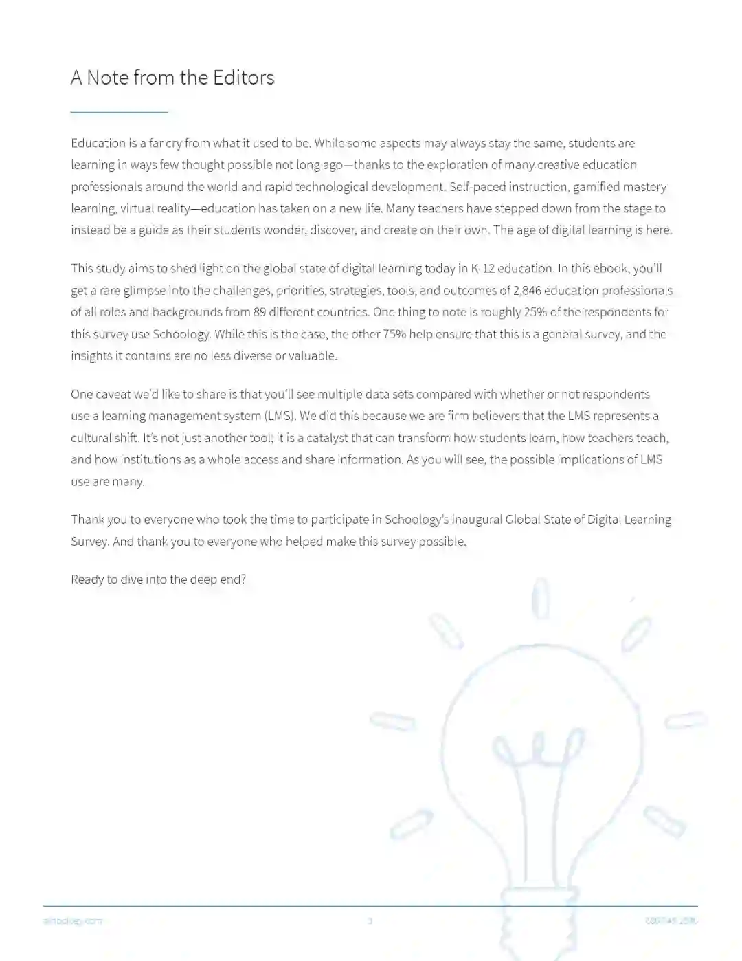 也许你没听说过,Schoology发布了一篇总结K-12的报告叫做“全球数字学习现状”。这是一份通过调查和访谈来自89个国家的2846个教师而得出的报告。