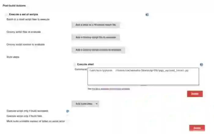 将上述脚本保存到一个 .sh 文件中, 截图(图借的)中改为 /bin/sh 脚本文件路径 (不要用paython,会报错),保存后再次构建即可上传到蒲公英了