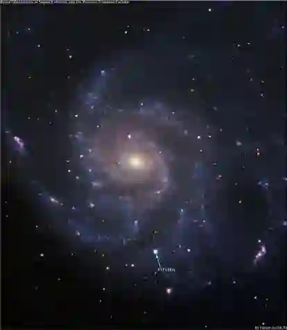 2011年8月24日,美国加利福尼亚州劳伦斯伯克利国家实验室的天文学家在M101星系中发现了一颗明亮的Ⅰa型超新星,其正式编号为SN 2011fe。这颗超新星是利用帕洛玛天文台口径1.2米施密特望远镜发现的,该天文望远镜的极限星等约20.6等,近年来积极投入亮度变化快速的瞬变事件搜寻工作, 即所谓的Palomar TransientFacility,简称PTF 搜寻。PTF于8月23日晚间观测影像中尚未见到M101中有任何超新星,却在隔天24日晚间的观测图像中出现,因此推测这颗超新星是在23日望远镜收工后几个小时内就开始爆发,原始编号为PTF11 kly,位于M101 星系中心以西59角秒、以南271角秒之处。最初观测到的亮度约为17.2等,但这颗超新星亮度变化相当快速,在8月25日达13.8等,27日达12.4等,30日达11.5等,到了31日已达10.8等。