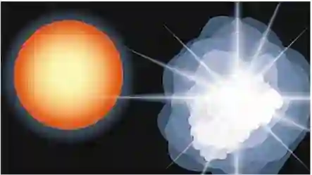 Ⅰa型超新星图示之二,当白矮星超过1.4倍太阳质量,它就会爆炸,变成一颗超新星
