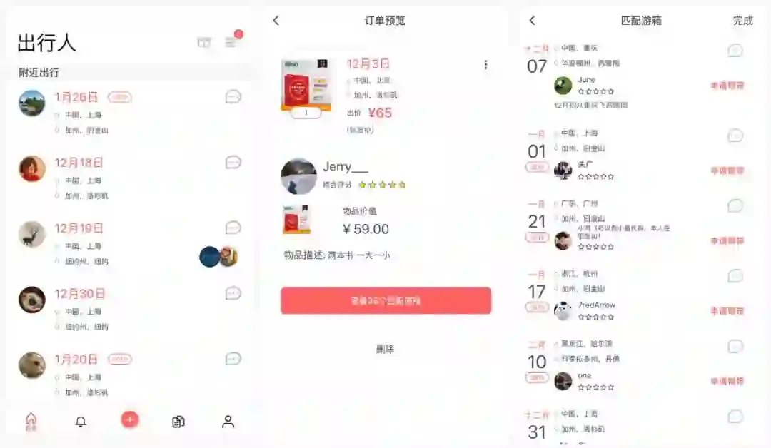 根据这些痛点,「游箱」做了以下设计:用帮带方的免税额度来海淘,降低海淘费用;平台作为中介来担保交易安全,交易完成后再把费用转给帮带方;可以追踪帮带方的GPS(能放大到某个街道),验证帮带方是否真的在国外;可以根据帮带方地理位置和快递单号,跟踪货物具体送到哪里了;交易完成后有互评环节,以显示用户的可信任度。