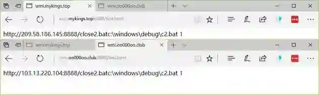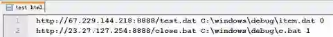 test.html中存放的是可执行文件的下载地址,这些文件会被WMI脚本下载到本地进行执行,且该网页中内容可以根据攻击者需求实时进行更新。如下图所示: