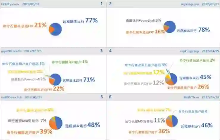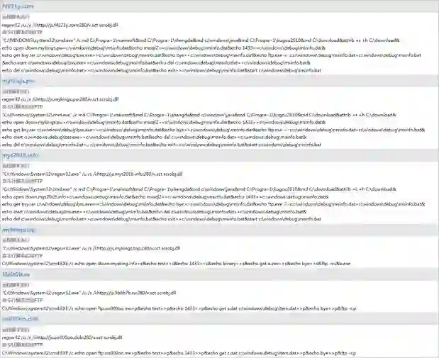 1. 上述六个域名都具有相同的病毒行为,远程脚本运行和命令行脚本启动FTP。