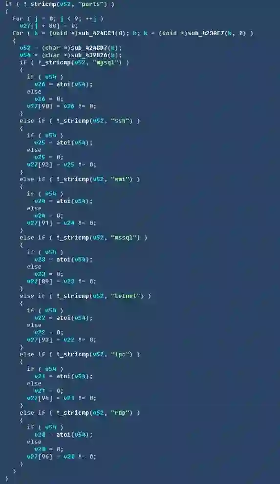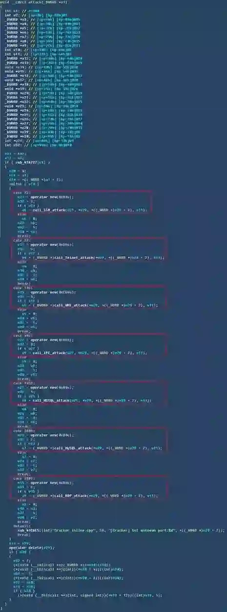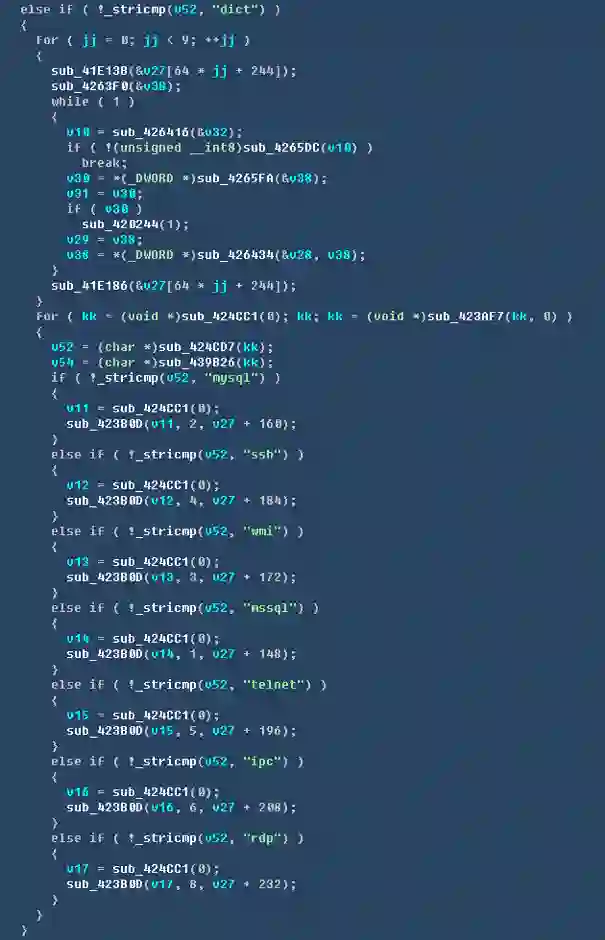 根据扫描主机的开放端口,病毒会采用如上图所示的攻击方式进行攻击。如下图所示: