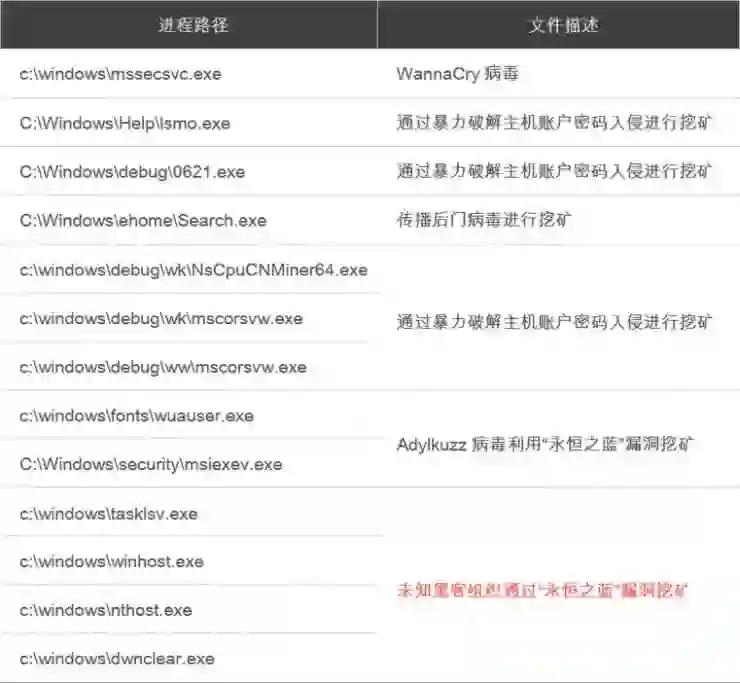 ▲“隐匿者”与利用漏洞挖取门罗币攻击与结束进程事件对比