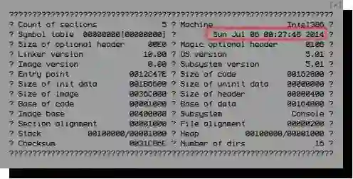 经过筛查与上述攻击具有同源性的样本,我们找到了更早期的相关样本,其编译时间为2014年7月。如下图所示: