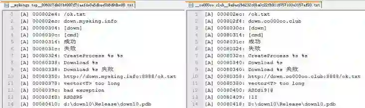 ▲mykings.top和oo000oo.club域名相关样本字符串数据对比
