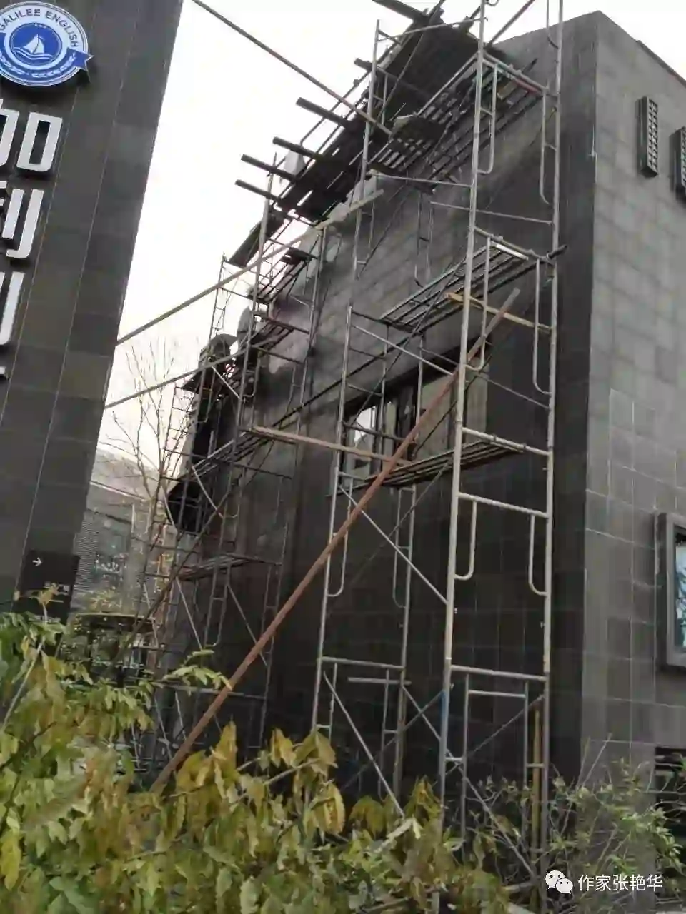 (我的书吧外围常年被铁架子包围维修中,敲敲打打。)
