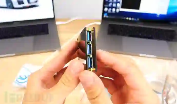 侧面有三个USB连接口,表示可以连接三个iphone,同时破解。