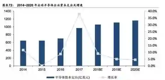 据Gartner数据,2017年全球半导体资本支出为970亿美金,创过去5年新高。Gartner预计,2018、2019年全球半导体资本支出将分别增长9.0%和5.0%,资本支出金额分别为1057.3亿美元和1110亿美元。全球半导体的资本支出的不断增长,也是行业进入门槛较高的一种体现,民间资本往往并不青睐于投资这样的领域,需要政府牵头带动。
