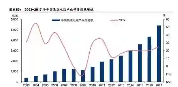 2017年我国集成电路销售规模已破5000亿元,2011~2017年复合增速达19%。