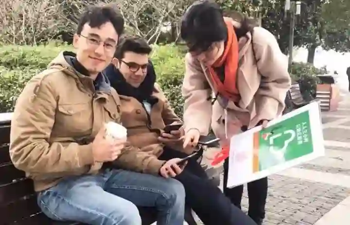 因为语言问题,今天他一开始只能在后面跟着大家举牌子,但他努力的学习中文说“公益三小时”,去和陌生的路人主动沟通,值得点赞!