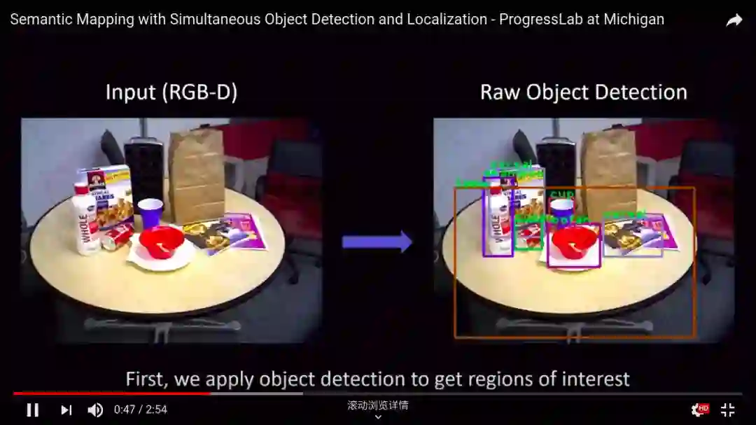 综合来说,SLAM和语义的结合点主要有两个方面: 1、 语义帮助SLAM。传统的物体识别、分割算法往往只考虑一幅图,而在SLAM中我们拥有一台移动的相机。如果我们把运动过程中的图片都带上物体标签,就能得到一个带有标签的地图。另外,物体信息亦可为回环检测、BA优化带来更多的条件。 2、SLAM帮助语义。 物体识别和分割都需要大量的训练数据。要让分类器识别各个角度的物体,需要从不同视角采集该物体的数据,然后进行人工标定,非常辛苦。 而SLAM中,由于我们可以估计相机的运动,可以自动地计算物体在图像中的位置,节省人工标定的成本。如果有自动生成的带高质量标注的样本数据,能够很大程度上加速分类器的训练过程。