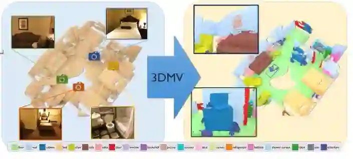 本文提出了3DMV,一种使用联合3D多视图预测网络在室内环境中进行RGB-D扫描的3D语义场景分割的新方法。与使用几何或RGB数据作为此任务的输入的现有方法相比,我们将这两种数据模态组合在一个联合的端到端网络架构中。我们首先从相关的RGB图像中提取特征图,而不是简单地将颜色数据投影到体积网格中并且仅以3D操作 - 这将导致细节不足。然后使用可反射的反投影层将这些特征映射到3D网络的体积特征网格中。由于我们的目标是可能有很多帧的3D扫描场景,我们使用多视图池化方法来处理不同数量的RGB输入视图。这种学习到的RGB和几何特征与我们的联合2D-3D架构相结合,可以获得比现有基线更好的结果。例如,与现有的体积架构相比,我们的结果在ScanNet 3D分割基准上的准确率从52.8%提升到75%.