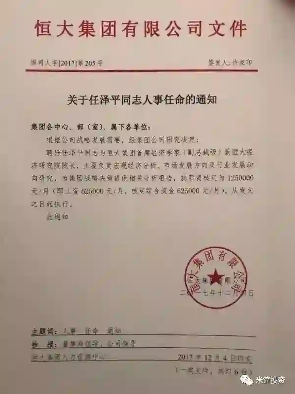 从江湖上聒噪着“5000万年薪”的流言到最终昨日恒大集团对任泽平正式任职的公开文件发出,事情终于尘埃落定。