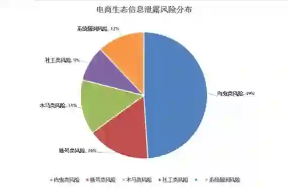 但在上图清晰的显示出在数据泄露风险中,内鬼类风险导致的信息泄露事件占比为49%。随后是账号类、系统漏洞类和木马类风险,分别占比为16%、12%、14%。