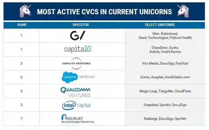 Google Ventures和Alphabet旗下另一个投资机构Capital G还并列成为投出独角兽最多的CVC。