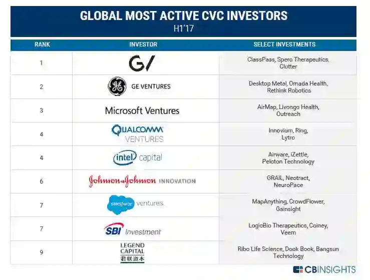 参考来源:CB Insights, “The H1’17 Global CVC Report”.