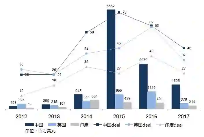 互联网领域以350笔交易位列首位,这比2016年下半年增长3%,但总融资金额则下降了6%。
