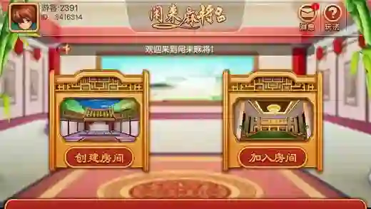 闲来系列游戏界面,只有创建房间和加入房间两个入口