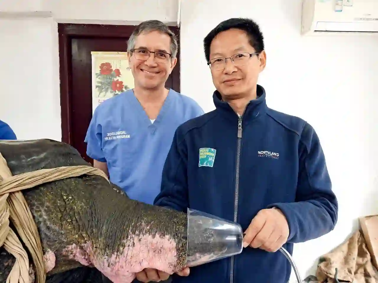 吕顺清、WCS首席兽医保罗·卡勒(Paul Calle)和斑鳖的合影