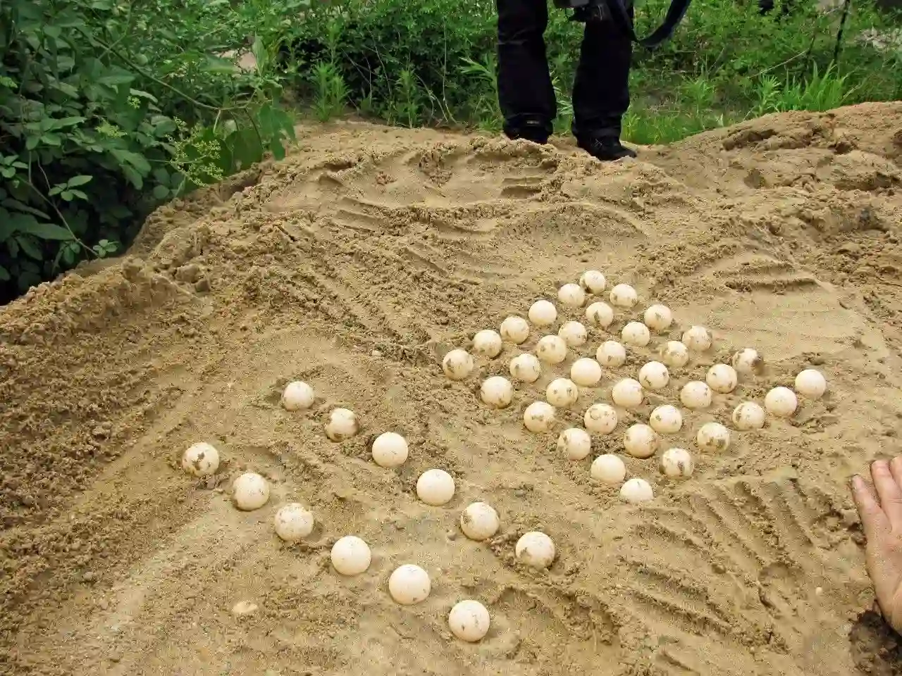 雌鳖在沙地上产下的卵