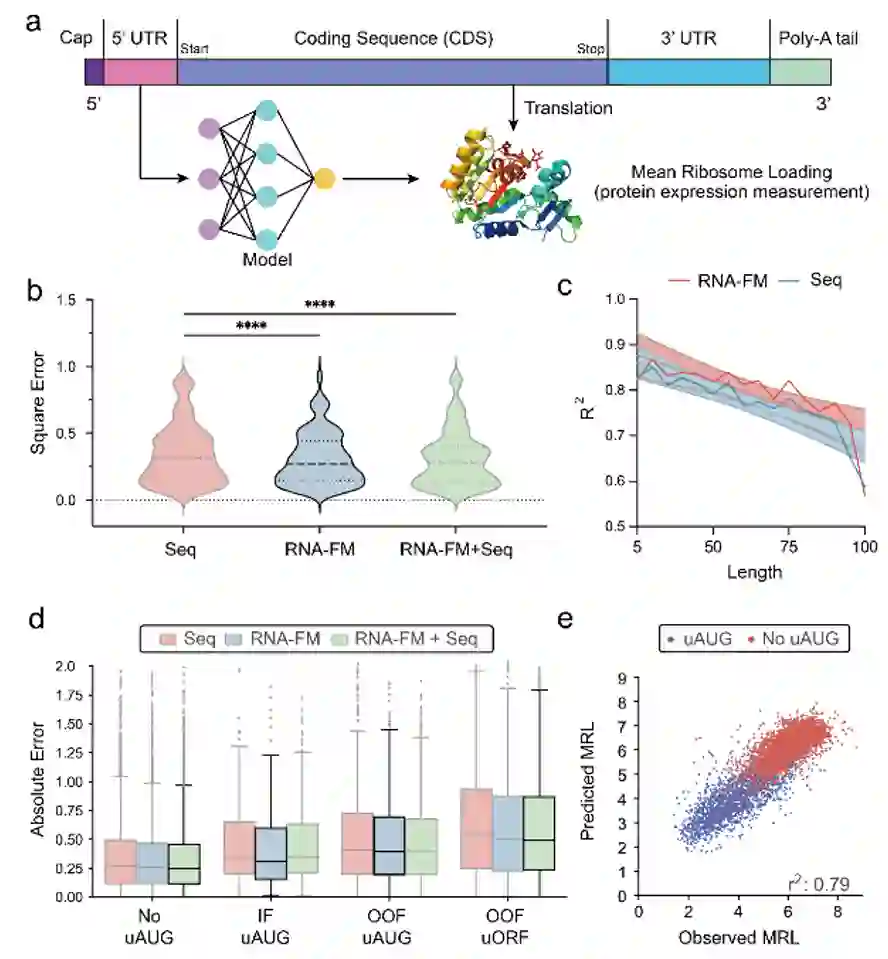 最后尝试利用 RNA-FM 基于 mRNA 上的 5’UTR 进行蛋白表达的功能预测