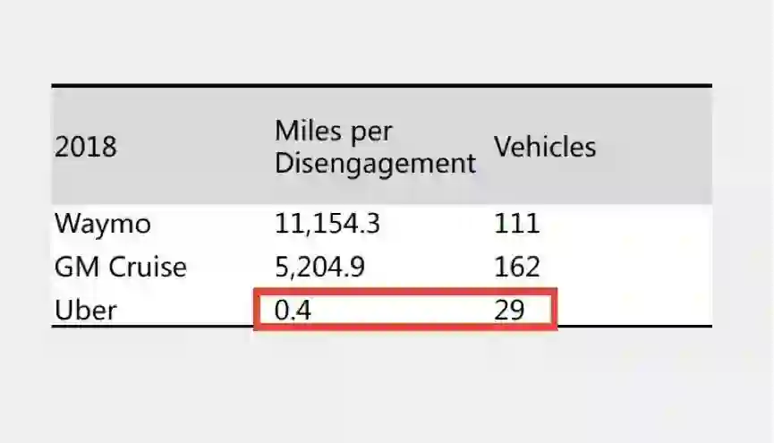 我们不仅仅看到Uber是过度乐观的,再看通用汽车,它在2017年底的时候,预测2018年一个月跑100万英里,一年跑1200万英里,实际上2018年它只跑了44万英里。