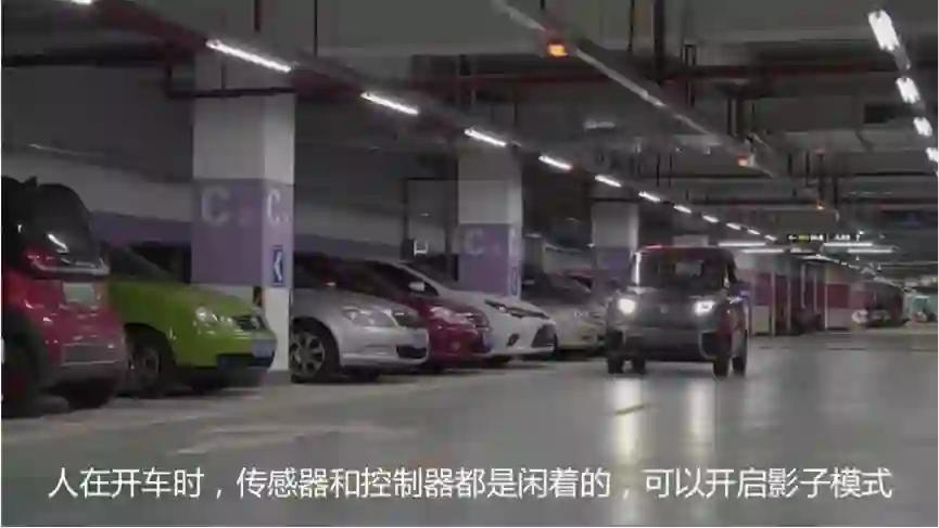 一种是影子模式,主驾驶系统人在开,无人驾驶系统在影子下面开。这是我们部署的一套系统,这辆车部署了自动代客泊车,人把车开到电梯口就下车了,用手机一键让它去泊车。