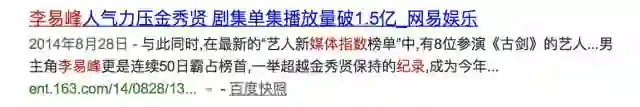 也就是说,就在这个互联网流量爆发的档口,《古剑奇谭》成为了踩准时机的现象级作品,李易峰,成了流量时代的第一个现象级男星。
