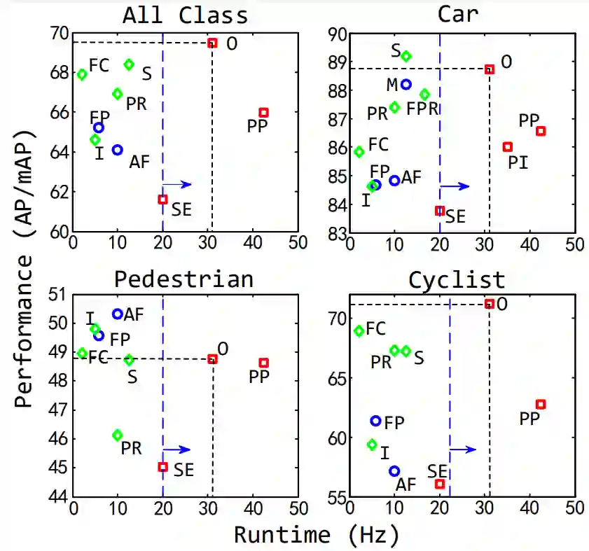 图 2 KITTI测试集上的速度-精度对比图,其中O为HVNet