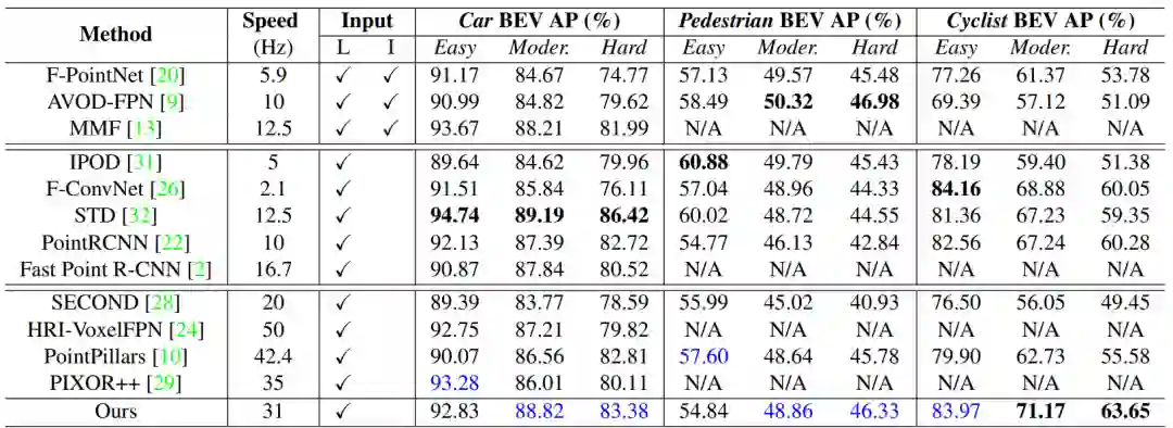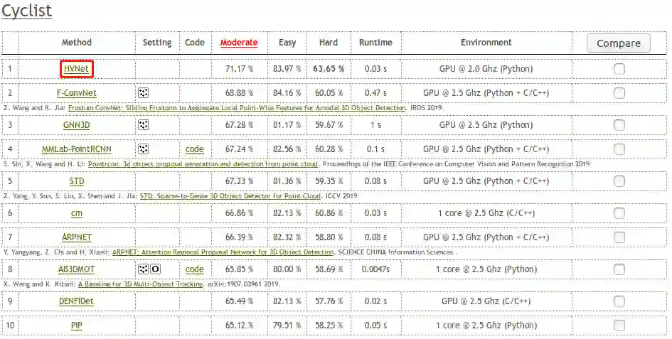 在KITTI数据集上,HVNet网络在KITTI数据集上提交结果的所有已有方法中获得了最好的mAP,并且实时推理速度可以达到31 Hz。