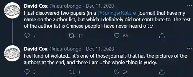 几年前「被」发表了两篇论文,与素不相识的中国学者「合著」两次,自己竟毫不知情。这是「合著者」还是出版商的锅?