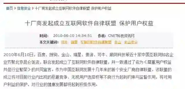 也是因为这个,我也被迫卷入了2010年轰动整个互联网行业的“3Q大战”,成为这段历史的亲身经历者。当时百度、搜狗、金山等发起了互联网软件自律联盟,我代表百度去做了一个中规中矩的发言,但是也明确表明了百度的立场,会更加开放、支持良性发展。