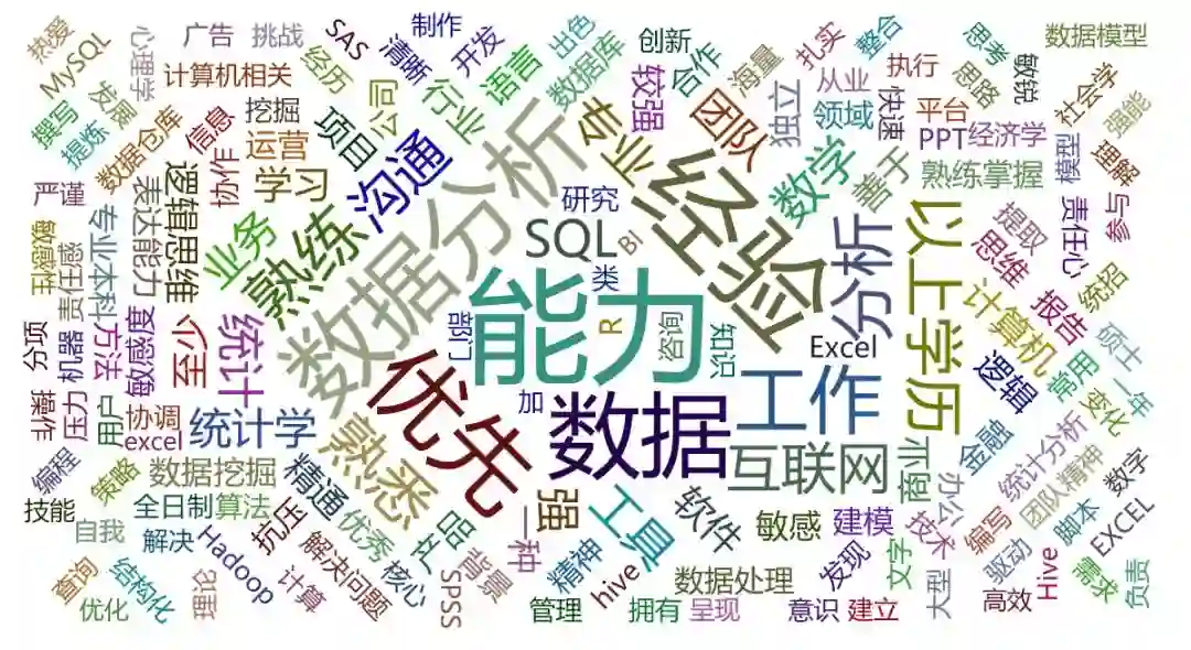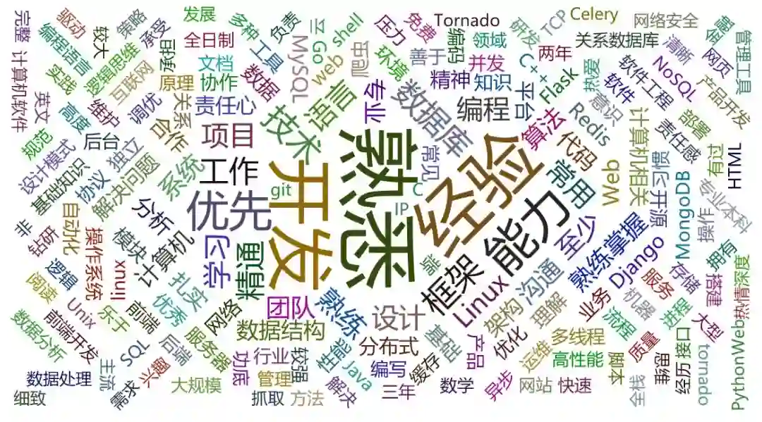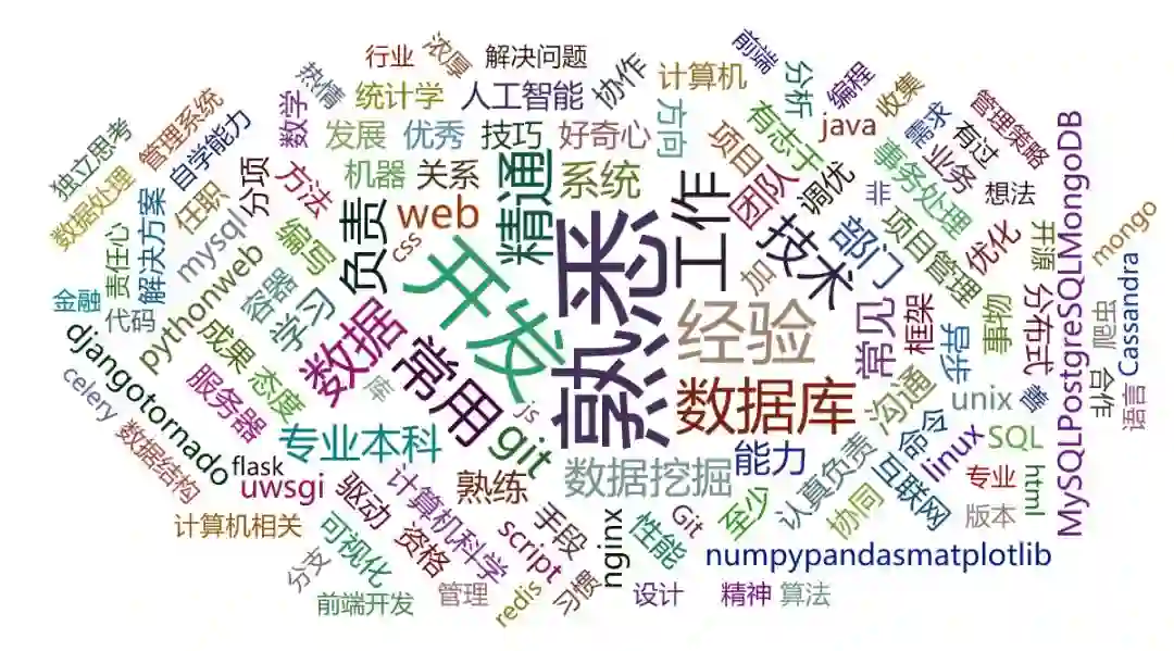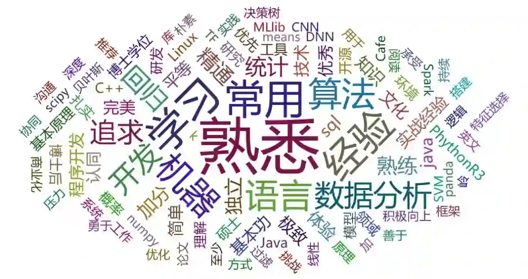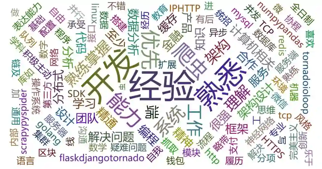 整个系列下来,词云分析虽不完全正确,但大家不难发现,有两个词在每个岗位要求的词云图中都有出现,那就是——经验和熟悉。的确,不论我们做什么,都必须认认真真的去做、去学,在不断的实践中积累经验。