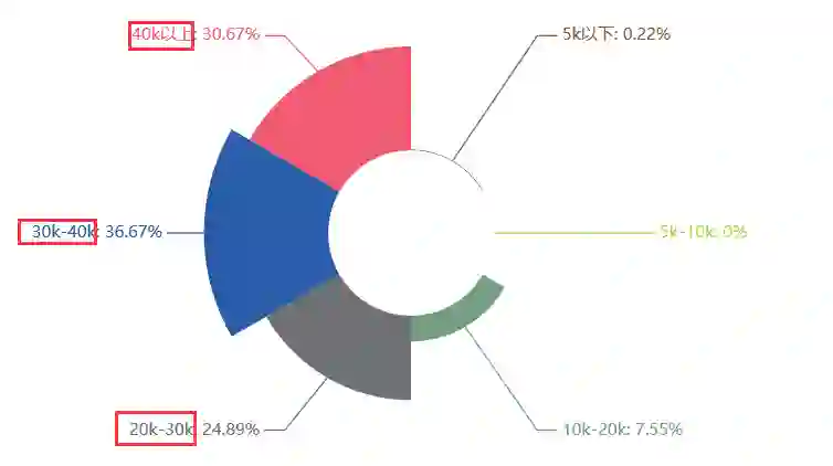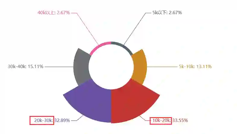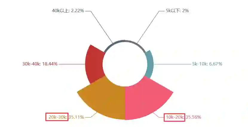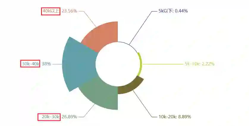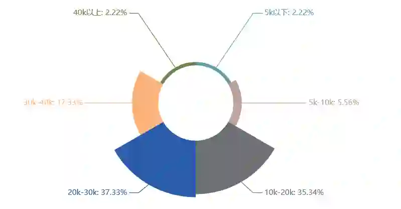 综合:数据分析这个岗位在学历要求上比爬虫要求稍微高一些,硕士比例有所提升,专业知识上有一定要求。薪资待遇上也还算比较优厚,基本在10k以上,同时薪资在30k-40k的比例也有所上升。对工作经验要求还是比较高,大部分的企业要求工作经验要达到3年以上。