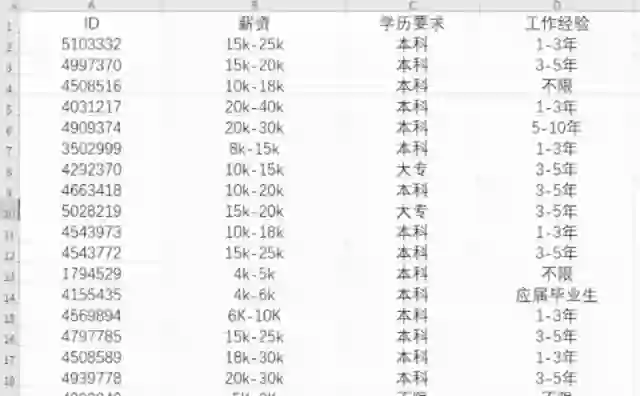 综合:爬虫这个岗位在学历要求上比较放松,大多数为本科即可,比较适合想转业的老哥小姐姐,学起来也不会特别难。而且薪资待遇上也还算比较优厚,基本在10k以上。不过唯一对工作经验要求还是比较高的,有近一半的企业要求工作经验要达到3年以上。