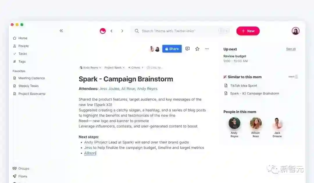 Mem的内置工作助手Mem X也得到进一步完善,增添了智能写作和智能编辑等新功能,利用人工智能根据提示生成文本,总结文件,为文件生成标题,并让用户使用自然语言命令来编辑或格式化文本。