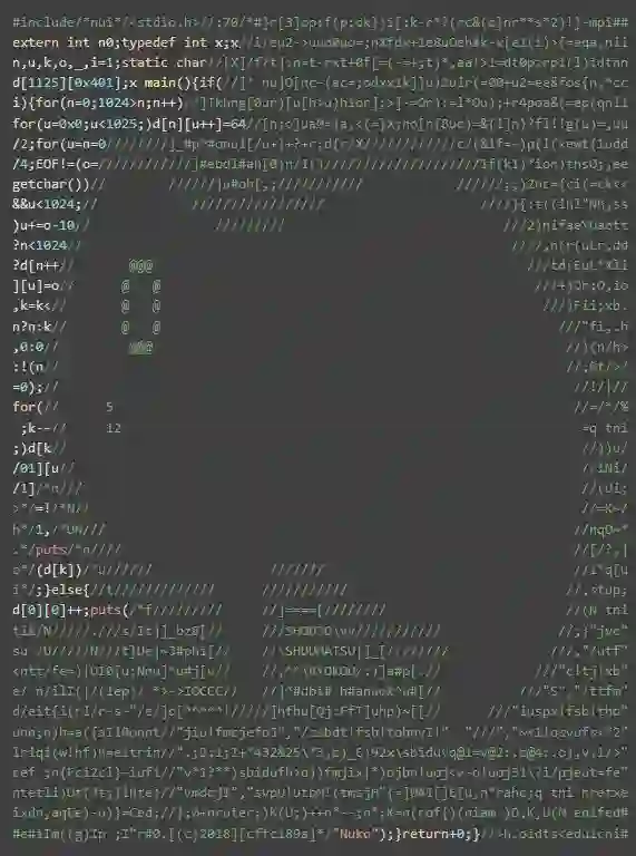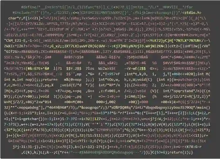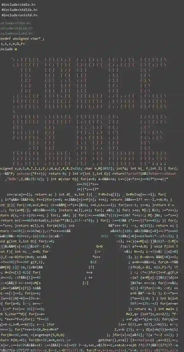 25 届国际 C 语言混乱代码大赛日前已成功举办,并公布获奖作品名单和代码。国际 C 语言混乱代码大赛(IOCCC, The International Obfuscated C Code Contest)是一项国际编程赛事,目的是写出最有创意的最让人难以理解的 C 语言代码,并限制在 4 kilobytes 以内。