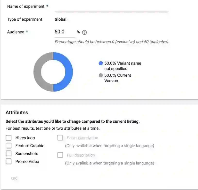 Google Play 提供内置 A/B 测试的工具。它会允许你测试很多东西,比如应用的 icon 、图片、视频、截图、描述。我们利用这个做了很多 A/B 测试,仅仅是从 icon 的颜色我们发现就会有 5%-7% 的转化率提升。