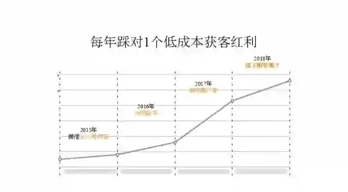 2015 年的公众号内容、2016 年的拼团、2017年的朋友圈广告,大部分人都觉得当时朋友圈广告是一个带品牌的东西而不能带量,但是我们当时做了一系列的优化,可以说实现了和其他相比非常低的获客成本。但是到后来已经水涨船高了。不管你在怎么优化都已经不 work 了。