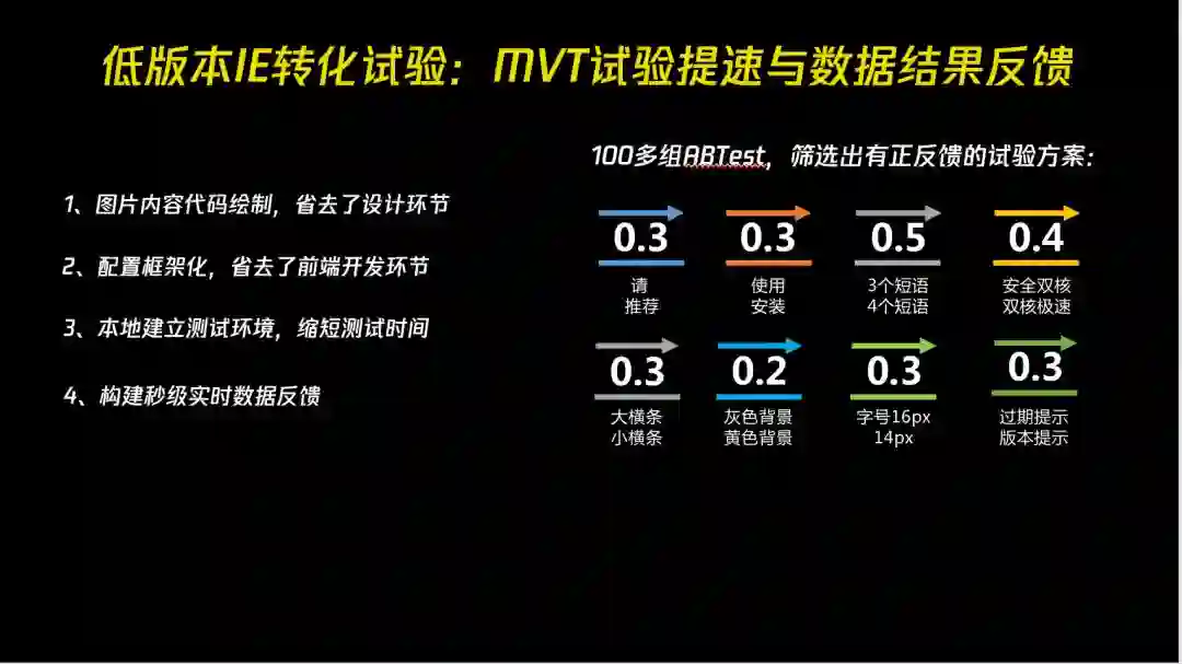 在获客上,在获客上,我们发现微软停止更新低版本 IE 后给国内用户和开发者带来不少问题,所以我们专门针对低版本 IE 用户做了转化,效果很好。