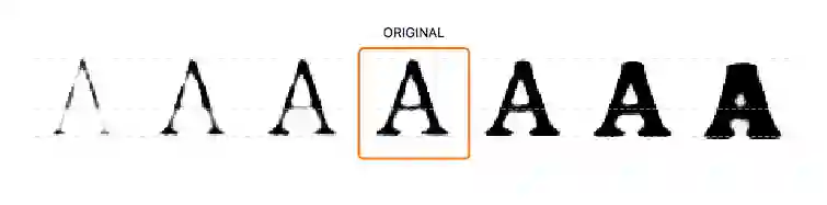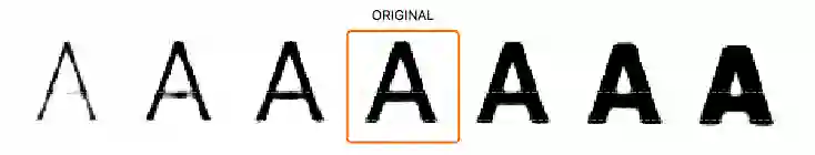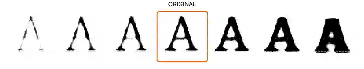 审视下左侧和右侧的字形,我们看到许多不幸的人工产物。特别是最右边的那个字形,边缘开始变得粗糙,衬线开始消失。更好的生成式模型可以减少这样的人工产物。这是一个很好的长期研究计划,提出了许多有趣的问题。不过,即使就我们现有的模型而言,使用生成式模型也有一些明显的好处。