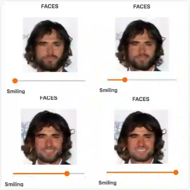 在字体工具展示的想法可以扩展到其他领域。使用相同的界面,我们可以使用一个生成式模型,基于表情、性别和发色等属性来操作人脸图像,基于长度和语气来操作句子,基于化学性质来操作分子: