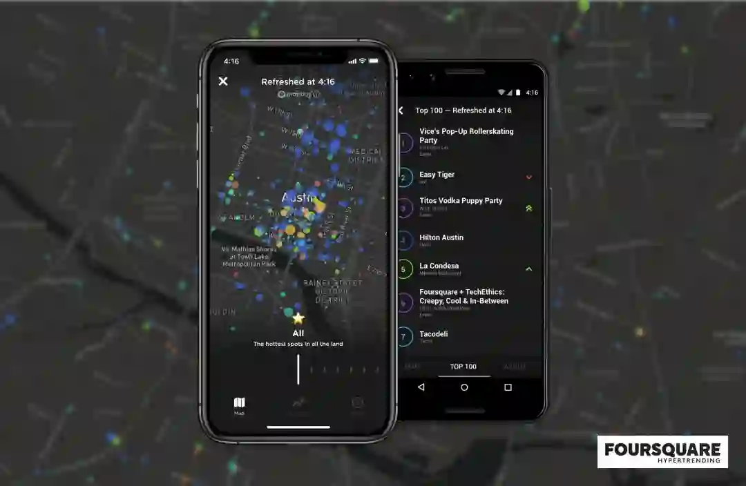 2009 年,丹尼斯·克劳利(Dennis Crowley)与纳文·塞尔瓦杜莱(Naveen Selvadurai)用六周时间写完代码,带着「定位签到」应用 Foursquare 在西南偏南上首秀。在最初版本的 Foursquare 上,用户可以与好友分享彼此的位置信息,追踪彼此的去向。