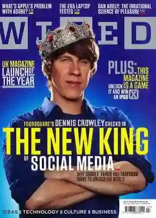 投资者为 Foursquare 描绘了更大的想象空间。Foursquare 发布六个月后,就拿到了第一笔融资。2010 年 6月,Foursquare 拿到 2000 万美元的 B 轮融资。克劳利头戴王冠登上《连线》杂志英国版封面,标题赫然写着 The New King of Social Media(社交媒体的新王),那是 Foursquare 最风光的时候。广告主看上了这种能够精准定位用户个人兴趣爱好的产品,一夜之间,LBS(Location Based Services)的签到模式被竞相模仿。