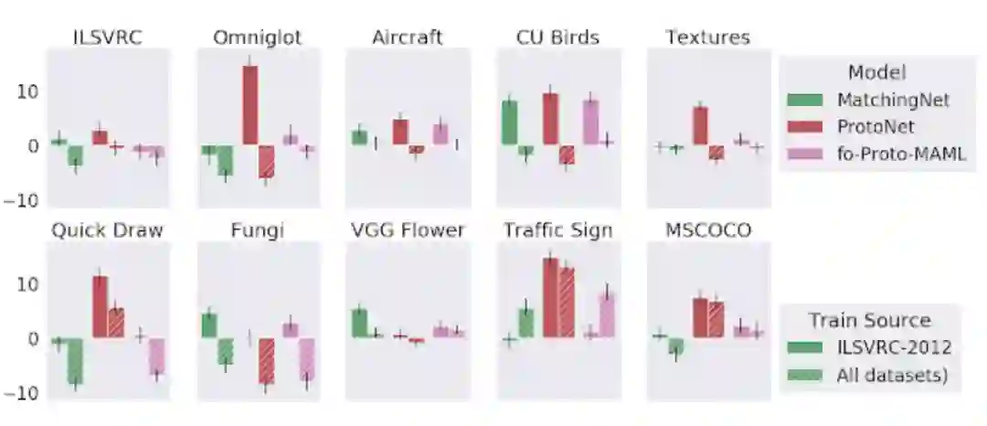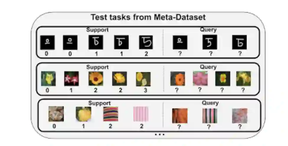 与此相反的是,Meta-Dataset 则可以在训练过程中获取到多样化的信息,并且快速的将其用来在测试过程中解决完全不同的任务,这些任务可能来自于完全看不到的数据集。